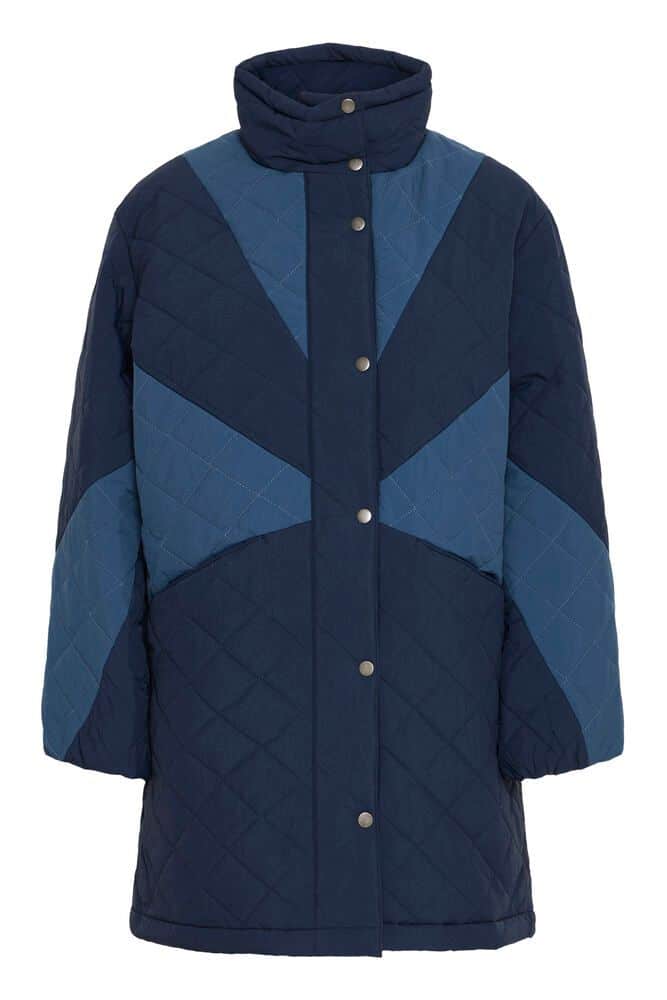Skøn vatteret jakke med knap lukning. Høj hals der holder dig lun. Denne fine jakke har lommer foran. Passer godt ind her i efteråret, og lidt senere når det er mere koldt, så brug en lækker strik inden under