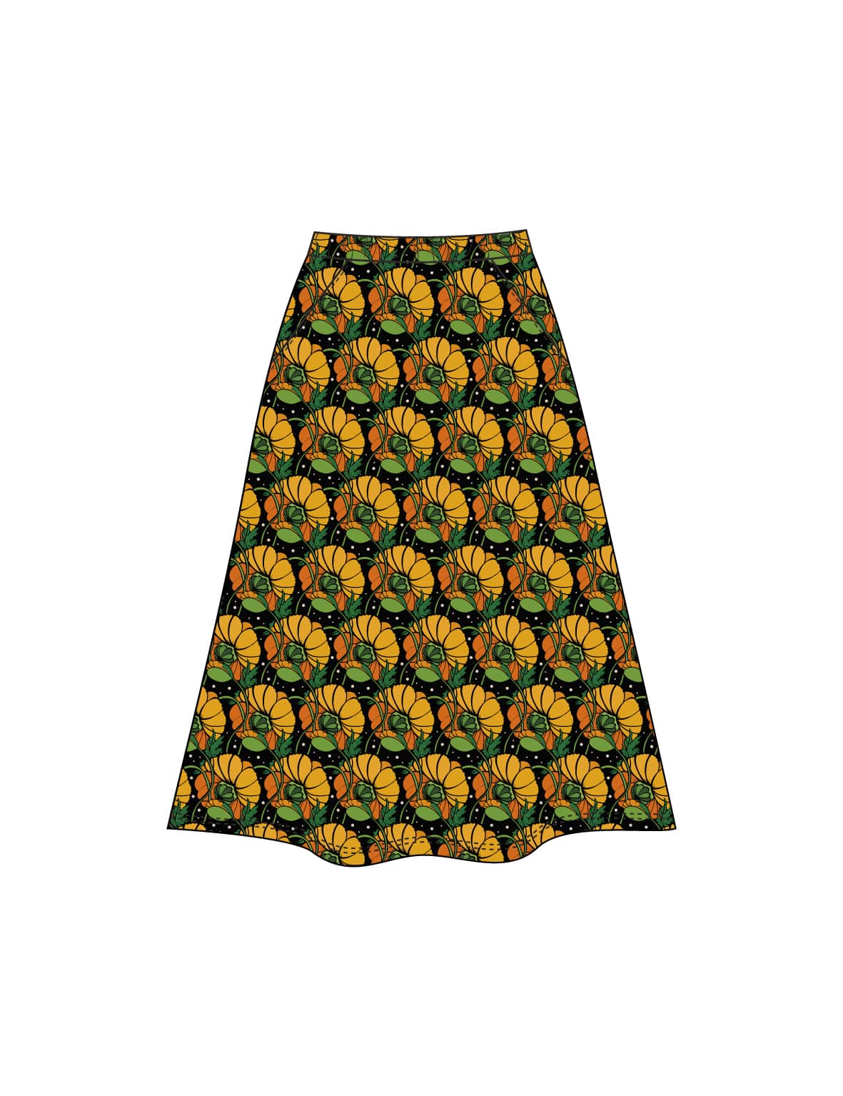 Lisa nederdelen er en behagelig model, med lommer foran. Nederdelen går ud i A facon. Nederdelen går til under knæet.